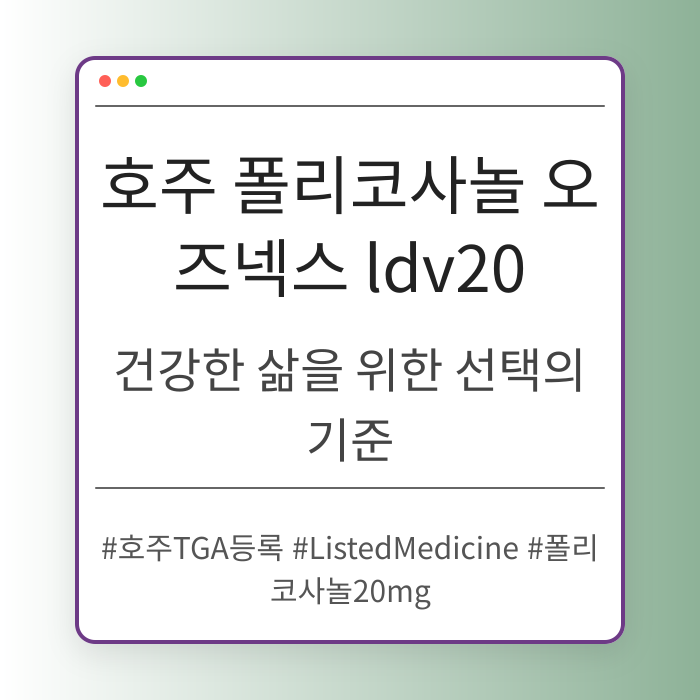 호주에서 제조된 폴리코사놀은 최근 몇 년 사이 많은 관심을 받고 있는 건강 보조 성분입니다. 특히, LDV20은 호주 TGA에 등록된 Listed Medicine으로, 안전성과 신뢰성을 갖춘 제품으로 기대를 모으고 있습니다. 폴리코사놀은 주로 사탕수수와 밀크씨슬에서 유래되어, 다양한 건강 효과를 가지고 있는 성분으로 알려져 있습니다. 실제로 많은 분들이 이 성분을 통해 건강한 일상으로의 개선을 경험하고 있다고 합니다.
