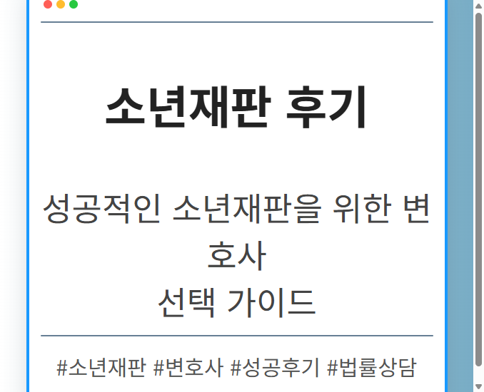 성공적인 소년재판을 위해서는 실력 있는 변호사를 선택하는 것이 중요합니다. 하지만 수많은 변호사 중에서 어떤 변호사선택해야 할지 막막할 수 있습니다. 실제 소년재판 후기를 통해 변호사 선택 시 고려해야 할 사항들을 자세히 알아보겠습니다.