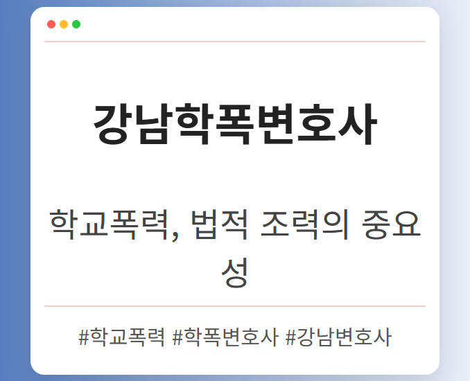 특히, 강남 지역은 교육열이 높고 학교폭력 사건에 대한 관심도 높기 때문에, 더욱 전문적인 변호사의 조력이 필요합니다. 강남 지역의 학교폭력 사건은 사건 관계자들이 법률 지식이 풍부하고, 소송 경험이 많은 경우가 많으므로, 이에 대응하기 위해서는 학교폭력 사건에 대한 전문성과 경험을 갖춘 변호사를 선임하는 것이 중요합니다.